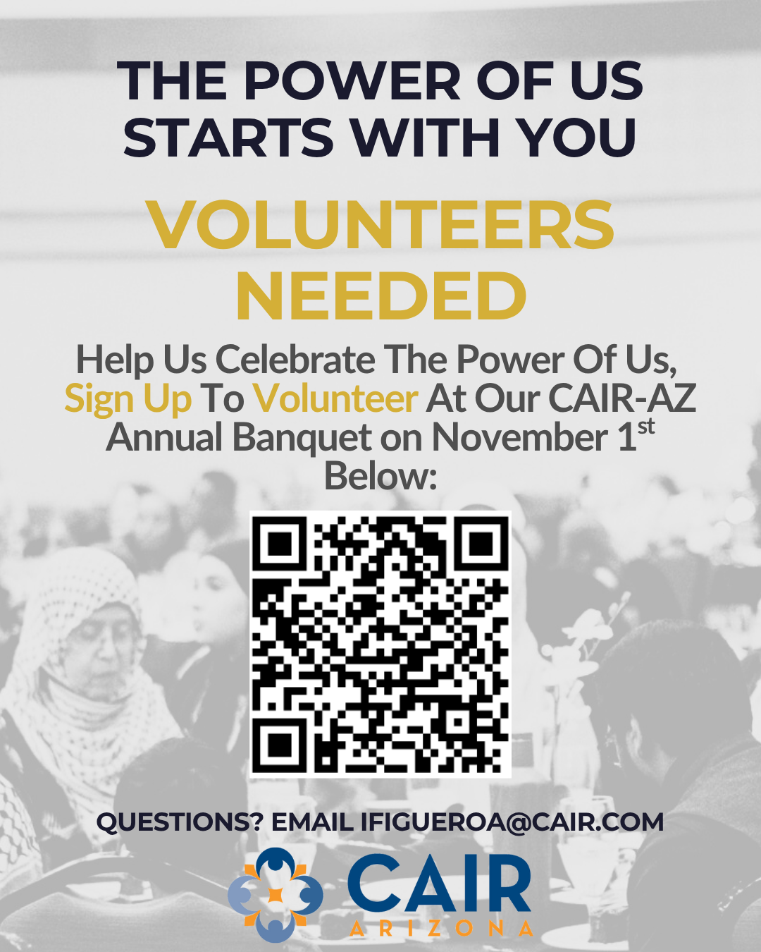 We need your help to make this year’s Annual Banquet a success! Each year, CAIR-Arizona’s Annual Banquet brings together hundreds of community members, leaders, and