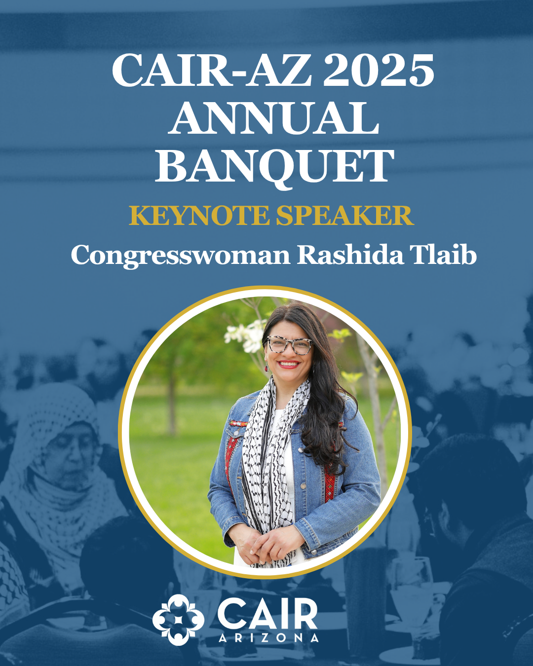 We’re thrilled to announce that CAIR-Arizona will be hosting our Annual Banquet on Saturday, November 1st, 2025! This year, we are honored to welcome Congresswoman Rashida Tlaib as